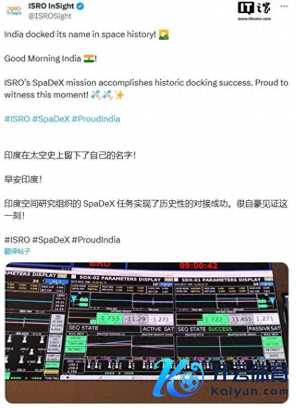 印度航天崛起:巨匠第四的空间对接竖立开云体育