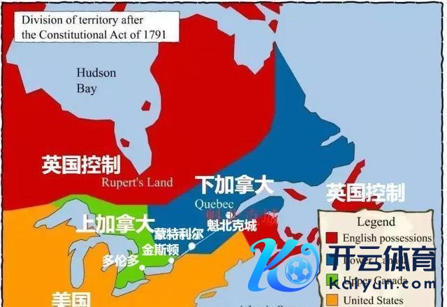 ▲上头和底下的加拿地面区,自后酿成了安大略和魁北克。