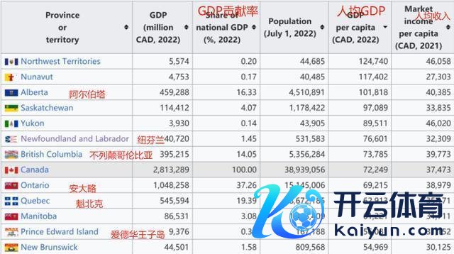 ▲2022年加拿大各省GDP情况开yun体育网,不列颠哥伦比亚省的东说念主均GDP卓著了世界平均水平。
