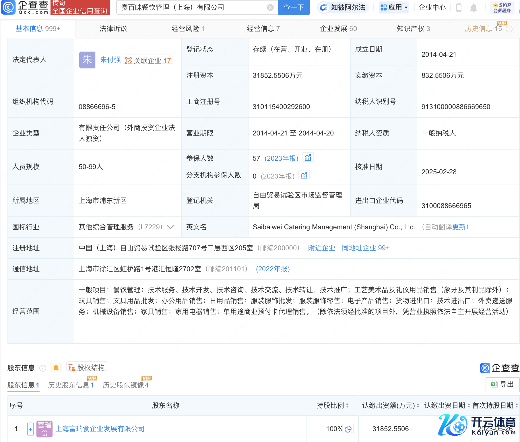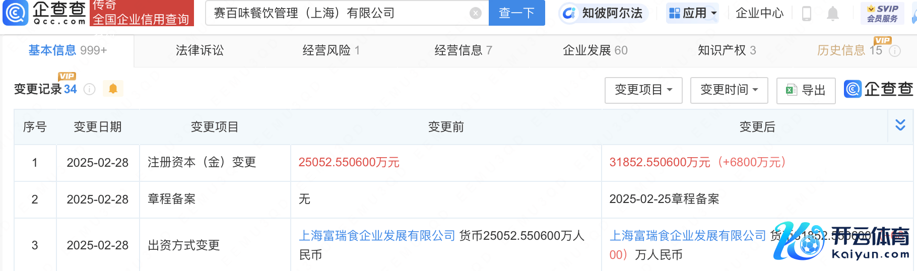 企查查APP显现,近日,赛百味餐饮措置(上海)有限公司发生工商变更,注册老本由约2.5亿东谈主民币增至约3.2亿东谈主民币。企查查信息显现,该公司建立于2014年,法定代表东谈主为朱付强,筹商领域包括餐饮措置、外卖寄递事业、单用途贸易预支卡代理销售等,由上海富瑞食企业发展有限公司全资抓股。